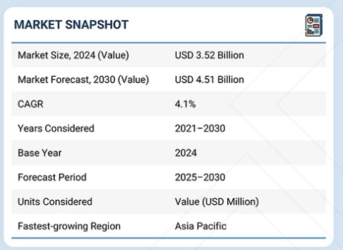 글로벌 항공기 씰 시장은 2024년 기준 35억 2천만 달러 규모로 평가되었습니다. 이는 2025년 36억 8천만 달러에서 2030년까지 45억 1천만 달러로 성장할 것으로 전망되며, 예측 기간 동안 연평균 복합 성장률(CAGR) 4.1%를 기록할 것으로 예상됩니다.