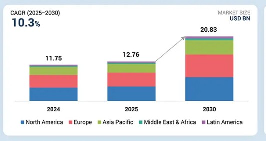 세라믹 매트릭스 복합재 시장은 2025년 127억 6천만 달러에서 2030년까지 연평균 복합 성장률(CAGR) 10.3%를 기록하며 208억 3천만 달러 규모에 이를 것으로 전망된다. 세라믹 매트릭스 복합재 시장은 높은 강도, 경량 특성, 뛰어난 내열성 등의 요인으로 인해 항공우주, 방위, 자동차, 에너지 분야에 적합하여 상당한 성장을 경험할 것으로 예상됩니다. 산업계가 연비 향상과 탄소 배출 감축에 대한 압박을 점점 더 받고 있는 가운데, 세라믹 매트릭스 복합재는 극한의 작동 환경에서도 내구성을 보장하면서 부품 무게를 줄여 기존 금속에 비해 뚜렷한 이점을 제공합니다. 효율성 향상, 냉각 수요 감소, 엄격한 환경 기준 준수를 가능하게 하기 때문에 제트 엔진, 가스 터빈, 제동 시스템에서의 적용이 확대되고 있습니다. 또한 섬유 기술, 제조 방법, 비용 효율성 측면에서의 지속적인 발전으로 세라믹 매트릭스 복합재의 상업적 실현 가능성이 더욱 높아지고 있습니다.