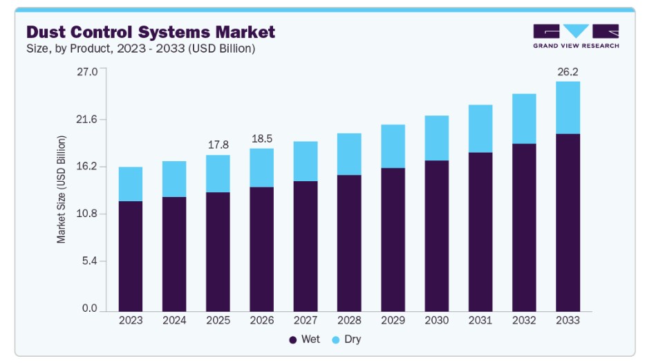 | ■ 영문 제목 : Dust Control Systems Market Size, Share & Trends Analysis Report By Product (Wet, Dry), By Application (Construction, Mining, Oil & Gas, Chemical, Food & Beverage, Pharmaceutical), By Region, And Segment Forecasts, 2026 - 2033 | |