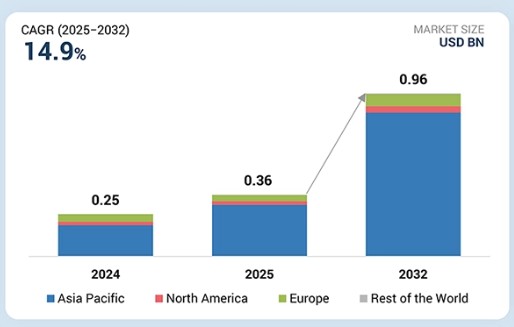 전기차(EV) 충전기용 전자 포팅 컴파운드 시장은 2025년 3억 6천만 달러에서 2032년까지 연평균 성장률(CAGR) 14.9%를 기록하며 9억 6천만 달러로 성장할 것으로 전망됩니다. 이러한 성장은 800V 이상에서 작동하는 초고속 충전 시스템으로의 급속한 전환에 의해 주도될 것으로 예상되며, 이는 소형 충전기 모듈 내부의 전기적 스트레스를 크게 증가시킵니다. 이러한 변화는 전력 모듈의 신뢰성을 저해하지 않으면서도 더 높은 부분 방전 저항, 장기적인 유전체 노화 및 극심한 열 사이클링을 견딜 수 있는 첨단 캡슐화 소재의 사용을 가속화하고 있습니다. 또한, 공공 및 차량용 충전소 모두에서 정류기, 인버터, 제어 모듈이 결합된 통합 전력 전자 장치의 채택이 증가함에 따라 내부 부품의 복잡성과 민감도가 높아지고 있습니다. 이러한 고밀도 조립체를 진동, 습기 유입 및 환경 오염 물질로부터 보호하기 위해 충전기 제조업체들은 용도별 포팅 컴파운드의 사용량을 늘리고 있으며, 이는 시장 성장을 직접적으로 뒷받침하고 있습니다.