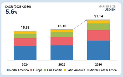 2024년 153억 3천만 달러 규모였던 글로벌 환경 모니터링 시장은 2025년 161억 달러를 기록했으며, 2025년부터 2030년까지 연평균 성장률(CAGR) 5.6%의 견고한 성장세를 이어가며 해당 기간 말에는 211억 4천만 달러 규모에 달할 것으로 전망됩니다. 환경 모니터링 부문의 성장은 주로 정부 기관의 엄격한 오염 모니터링 규제 도입, PM2.5 농도 증가로 특징지어지는 대기 질의 지속적인 악화, 그리고 오염 수준 증가와 관련된 공중 보건 우려의 고조 등에 의해 주도되고 있다. 또한 규제 체계의 급증과 센서 기술의 발전, 환경 지속 가능성에 대한 강조가 더해지면서 정밀하고 실시간적인 모니터링 솔루션에 대한 수요가 증가하고 있습니다. 이러한 추세는 환경 분석을 전 세계적인 차원에서 오염 관리, 자원 최적화, 규제 기준 준수의 핵심 요소로 자리매김하게 하고 있습니다.