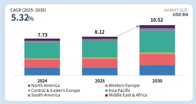 난연제 시장은 2025년 81억 1,890만 달러에서 2030년 105억 1,990만 달러에 달할 것으로 예상되며, 연평균 복합 성장률(CAGR)은 5.32%로 전망됩니다. 난연제는 화재 사고가 사람, 재산, 환경에 미치는 파괴적인 영향을 줄이는 핵심 요소입니다. 난연제로 가장 흔히 사용되는 원소는 브롬, 염소, 인입니다. 이 원소들의 화합물은 잠재적으로 가연성 물질에 첨가되어 처리됩니다. 난연제는 기체상에서 화재 순환 과정과 상호작용하여 화학적 연쇄 반응을 차단함으로써 화재를 억제합니다. 이들은 두 가지 방식으로 작용합니다: 화재 발생 자체를 방지하거나, 발생 시 화재를 현저히 늦추는 것입니다. 난연제는 모재의 특성을 변경하지 않습니다. 전 세계 난연제 시장은 강화되는 화재 안전 규정, 전자·건설·자동차·섬유 산업의 수요 증가, 지속가능하고 할로겐이 없는 솔루션으로의 전환 추세에 힘입어 급속히 성장하고 있습니다.