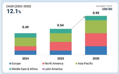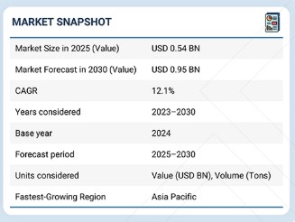 GFRP 철근 시장은 2025년 5억 4천만 달러에서 2030년까지 연평균 성장률(CAGR) 12.1%로 9억 5천만 달러 규모에 이를 것으로 전망됩니다. 건설 분야에서 경량 및 내식성 보강재에 대한 수요가 증가함에 따라 GFRP 철근 시장은 빠르게 성장하고 있습니다. 기존 강철 철근이 녹슬고 과도한 유지보수가 필요한 반면, GFRP 철근은 높은 인장 강도, 비부식성, 전자기 중립성 측면에서 강력한 장점을 지니고 있어 극한 환경에서의 인프라 개발에 적합합니다.