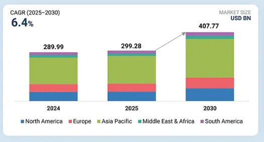 HVAC 시스템 시장은 2025년 2,992억 8천만 달러에서 2030년까지 연평균 복합 성장률(CAGR) 6.4%를 기록하며 4,077억 7천만 달러 규모에 이를 것으로 전망됩니다. HVAC 시스템은 가정, 기업 또는 산업 공간의 실내 온도, 습도 및 공기 질을 조절하기 위해 설계된 일련의 기술입니다. 공기 순환을 제어하고, 난방 및 냉방을 통해 온도를 조절하며, 적절한 환기를 보장하는 장비를 포함합니다.