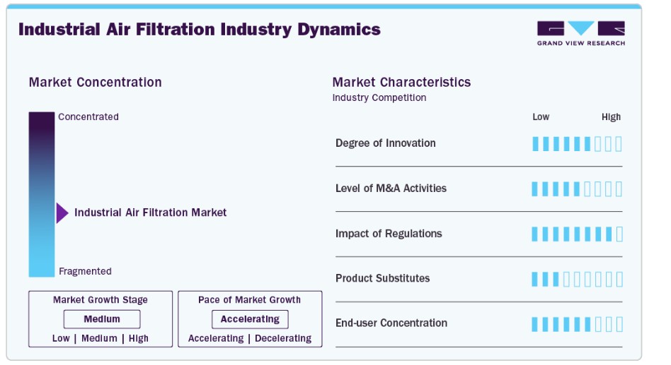 산업용 공기 여과 산업은 여러 글로벌 기업과 다수의 지역 및 틈새 시장 제조업체가 공존하는 등 다소 분산된 구조를 보이고 있습니다. 선도 기업들은 기술, 여과 효율, 그리고 변화하는 배출 기준 준수를 통해 경쟁하는 반면, 중소 기업들은 비용 효율적이고 특정 용도에 특화된 솔루션에 주력하고 있습니다. 지속적인 제품 업그레이드와 맞춤형 요구 사항으로 인해 시장의 완전한 통합은 제한되고 있습니다.