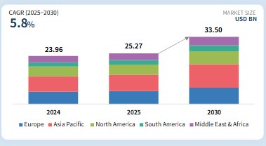액상 도포형 방수막(LAM) 시장은 2025년 2,527만 달러에서 2030년까지 연평균 성장률(CAGR) 5.8%를 기록하며 335억 달러 규모에 도달할 것으로 전망된다. LAM 시장은 상업 및 주거 부문을 위한 이음매 없는, 오래 지속되는, 비용 경쟁력 있는 방수 솔루션에 대한 수요 증가에 힘입어 강력한 성장을 경험하고 있습니다. 도시화, 기후 회복력 강화 노력, 지속 가능한 건설 트렌드가 시장 확장을 주도하고 있습니다.