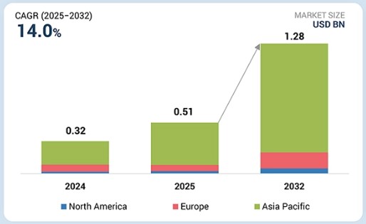 액체 냉각식 전기차 충전 케이블 시장은 2025년 5억 1,000만 달러에서 2032년 12억 8,000만 달러로 성장할 것으로 전망되며, 이는 연평균 성장률(CAGR) 14.0%에 해당합니다. 이러한 성장은 초고속 직류(DC) 충전으로의 급속한 전환에 힘입은 것으로, 전류 수준이 높아짐에 따라 공기 냉각식 케이블은 열적·인체공학적 측면에서 실용성이 떨어지게 되었습니다. 150kW에서 350kW에 이르는 전력 수준에서 지속적인 작동을 가능하게 하는 통합형 액체 냉각 및 마이크로채널 설계로 기술이 명확하게 전환되고 있습니다. 이러한 기술 발전으로 케이블은 더 작고, 가볍고, 유연해졌습니다. 또한, 더 큰 배터리 팩과 더 높은 충전 수용률과 같은 차량 플랫폼의 개선으로 인해 충전 인프라는 정격 감축 없이 고전력을 공급해야 하며, 이는 액체 냉각 케이블의 채택을 직접적으로 뒷받침합니다. 충전 네트워크의 경제성 또한 이러한 추세에 기여하고 있습니다. 액체 냉각 케이블은 충전소의 가동 시간, 활용도 및 장기적인 신뢰성을 향상시키는 동시에 소형 고출력 충전기 설계를 수용할 수 있기 때문입니다. 더욱 엄격해진 안전 기준, 내구성 요구 사항, 그리고 향후 더 높은 전력 수준을 대비한 설비의 미래 대비 필요성은 급속 충전 네트워크에서 액체 냉각 충전 케이블의 사용을 선택 사항에서 표준으로 전환하는 움직임을 더욱 가속화하고 있습니다.