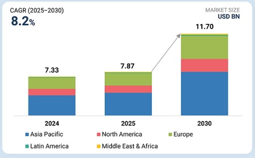 멤브레인 시장은 2025년 78억 7천만 달러에서 2030년까지 연평균 복합 성장률(CAGR) 8.2%로 117억 달러 규모에 이를 것으로 전망됩니다. 막 시장은 깨끗한 식수 수요 증가, 물 부족 심화, 산업화 확대 등 여러 요인으로 성장하고 있습니다. 엄격한 환경 규제, 기술 발전, 제약·식품·음료·화학·석유화학 등 산업 분야에서의 막 응용 확대 역시 이 성장에 기여하고 있습니다. 막 관련 소재와 기술 모두 이러한 추세에서 혜택을 보고 있습니다.
