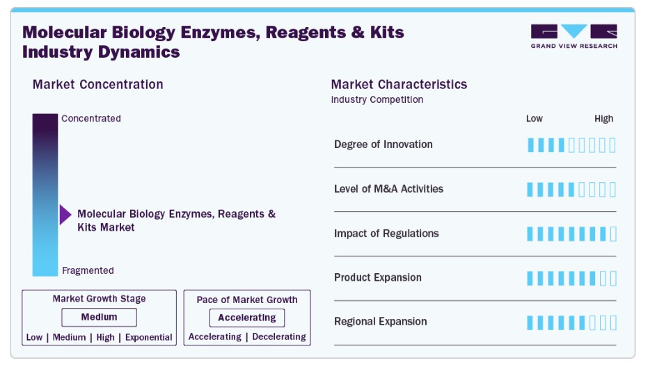 인수합병(M&A) 활동은 다소 활발한 편으로, 대형 생명과학 및 진단 기업들이 분자생물학 포트폴리오 확장을 위해 전문 시약 및 효소 공급업체를 인수하고 있습니다. 이러한 움직임은 기술 통합을 지원하고, 연구개발 역량을 강화하며, 시장 진입을 가속화합니다. M&A 외에도 분자 도구 개발사와 생물정보학 기업 간의 전략적 협력도 증가하고 있으며, 특히 통합형 다중 오믹스 플랫폼과 임상 연구 애플리케이션에 대한 수요 증가를 충족시키기 위한 협력 사례가 늘고 있습니다.