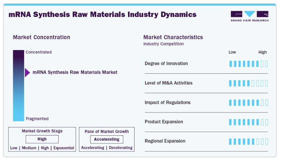 mRNA 합성 원료 산업의 혁신 수준은 매우 높으며, 효율성과 효과성을 개선하기 위한 새로운 기술과 공정이 지속적으로 개발되고 있습니다. mRNA 분야는 지속적인 연구를 통해 발견과 응용이 이루어지면서 빠르게 진화할 것으로 예상됩니다. 예를 들어, 2024년 4월 모더나(Moderna)와 오픈AI(OpenAI)는 생성형 AI를 모더나의 운영에 통합하여 mRNA 치료제 개발을 가속화하기 위해 협력했습니다.
