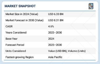 글로벌 핵의학 장비 시장은 2025년 66억 3천만 달러에서 2030년까지 83억 1천만 달러에 달할 것으로 전망되며, 예측 기간 동안 연평균 복합 성장률(CAGR) 4.6%로 성장할 것으로 예상됩니다. 시장 성장은 주로 암 및 심혈관 질환 발생률 증가, 조기 및 정확한 진단 영상에 대한 수요 증가, PET/CT 및 SPECT/CT와 같은 하이브리드 영상 장치의 채택 확대에 의해 주도되고 있습니다.