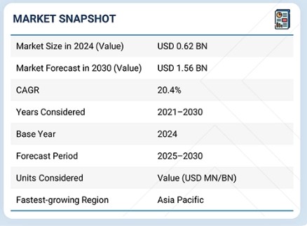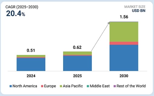 광(레이저) 위성 통신 시장은 2025년 6억 2천만 달러에서 2030년 15억 6천만 달러로 연평균 성장률(CAGR) 20.4%를 기록하며 성장할 것으로 전망됩니다. 수량 기준으로 광(레이저) 위성 통신 단말기는 2025년 10,791대에서 2030년 19,484대로 증가할 것으로 예상되며, 이러한 성장은 대용량 데이터 링크 및 보안 통신에 대한 수요 증가와 저궤도(LEO) 위성 군집 전반에 걸친 레이저 위성 간 링크의 도입 확대에 힘입은 것입니다.