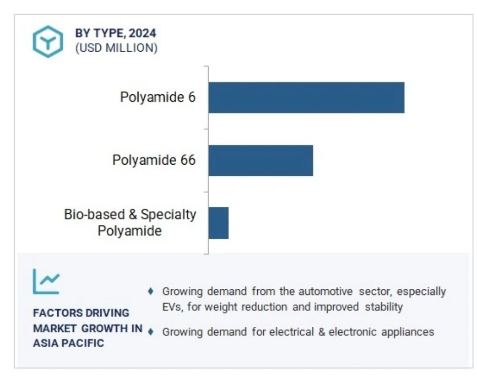 폴리아미드 시장의 매력적인 기회아시아 태평양아시아 태평양 지역의 폴리아미드 시장은 급속한 산업화, 자동차 생산 확대, 기술 섬유 및 전자 제품에 대한 수요 증가로 성장하고 있습니다. 무게 경량화와 안정성 향상을 위한 자동차 부문, 특히 전기차(EV)의 수요 증가가 시장을 주도할 것으로 예상됩니다. 바이오 기반 폴리아미드에 대한 투자 및 연구 개발은 시장 참여자들에게 수익성 높은 기회를 제공할 것으로 예상됩니다. 폴리아미드 시장은 2030년까지 536억 2천만 달러 규모에 달할 것으로 전망되며, 예측 기간 동안 연평균 복합 성장률(CAGR) 4.5%로 성장할 것으로 예상됩니다. 변동하는 원자재 가격은 이 시장의 성장에 도전 과제가 될 것으로 예상됩니다. 글로벌 폴리아미드 시장 동향주요 성장 동인: 자동차 부문, 특히 전기차(EV)의 무게 경량화 및 안정성 향상 수요 증가자동차 산업, 특히 전기차(EV) 증가로 인한 수요 증가는 폴리아미드 시장의 주요 성장 동인이다. 자동차 제조사들은 차량 에너지 효율성과 성능 향상에 집중하고 있으며, 이는 복잡한 금속 부품을 동등하거나 더 우수한 성능을 더 낮은 비용으로 제공할 수 있는 경량 소재로 대체하려는 관심 증가로 이어졌다. 주로 PA6, PA66 및 PPA와 같은 일부 특수 등급으로 구성된 폴리아미드는 높은 강도-중량비, 우수한 열 안정성, 우수한 내화학성 및 내마모성을 제공합니다. 이러한 특성으로 인해 폴리아미드는 자동차 제조사와 열적 성능이 요구되는 부품(전기차의 모든 엔진룸 부품, 커넥터, 하우징, 배터리 모듈 포함) 제조업체들이 선호합니다. 전기차에서 제조사들은 안전성과 내구성을 유지하면서 배터리 수명과 주행 거리를 늘리기 위해 무게를 최소화하는 것을 목표로 합니다. 폴리아미드를 적용하면 차량에 필요한 기계적·열적 특성을 저하시키지 않으면서도 경량화를 달성할 수 있습니다. 또한 폴리아미드의 비용 효율성과 성형성은 배터리 제어 장치 및 컨트롤러와 같은 전기 구동계, 센서, 전력 전자 장치용 복잡한 부품의 대량 생산을 지원합니다. 자동차 산업의 지속가능성과 전기화 추세는 첨단 엔지니어링 플라스틱의 차량 내 활용이 점차 보편화될 것임을 의미합니다. 특히 아시아 태평양, 유럽, 북미 지역에서 증가하는 전기차 생산량은 고성능 폴리아미드 수요를 촉진할 것으로 예상되며, 이는 차세대 자동차 혁신과 기능 구현에 있어 폴리아미드의 핵심적 역할을 부각시킵니다. 제약 요인: 다양한 대체재의 가용성폴리아미드 시장 성장은 유사하거나 더 우수한 성능을 더 낮은 비용으로 제공하는 다수의 대체재 및 대안 소재의 가용성으로 인해 상당한 제약을 받고 있습니다. 일부 응용 분야에서는 폴리에스터(PET 및 PBT 등), 폴리우레탄, 폴리올레핀, 심지어 고성능 복합 소재까지 폴리아미드 대체재로 점점 더 많이 사용되고 있습니다. 이러한 대체 소재들은 최종 사용 요구사항에 따라 향상된 물리적 특성, 낮은 수분 흡수율, 우수한 치수 안정성 또는 개선된 가공성을 제공하는 경우가 많습니다. 예를 들어, 자동차 및 전기 부품에서는 낮은 비용과 충분한 내열성으로 인해 PBT와 폴리프로필렌이 자주 선택됩니다. 또한 섬유 및 유연 포장 산업에서는 특히 비용이 중요한 고려 사항인 경우 폴리에스터와 폴리올레핀이 폴리아미드 섬유 및 필름과 직접 경쟁합니다. 지속 가능한 포장에 사용되는 폴리락틱산 및 열가소성 전분 기반 소재와 같은 바이오 기반 및 생분해성 폴리머 시장의 성장 역시 기존 폴리아미드 시장에 도전장을 내밀고 있습니다. 소재 분야의 지속적인 혁신과 대체 폴리머의 성능 향상은 폴리아미드가 다양한 응용 분야에서 시장 점유율을 유지하려는 노력을 더욱 복잡하게 만듭니다. 이러한 경쟁력 있는 대체 소재의 유입 증가는 폴리아미드의 특정 비용 민감 시장 진입을 효과적으로 제한하여 폴리아미드 시장의 전반적인 성장을 억제하고 있습니다. 기회: 바이오 기반 폴리아미드에 대한 투자 및 연구 개발산업계가 지속가능하고 친환경적인 소재로 전환을 지속함에 따라, 바이오 기반 폴리아미드에 대한 투자 및 연구 개발은 폴리아미드의 긍정적인 성장 전망을 주도하고 있습니다. 바이오 기반 폴리아미드는 석유화학계 폴리아미드와 화학적으로 동일하지만 식물성 오일과 같은 재생 가능 원료에서 유래되어 탄소 발자국 감소, 화석 연료 수요 저감, 내구성·유연성·내열성·내화학성 등 우수한 성능을 포함한 여러 장점을 제공합니다. 바이오 기반 폴리아미드의 가공성, 비용 효율성 및 적용 범위 향상을 위한 추가 연구 개발이 진행 중입니다. 동시에 재생 가능한 단량체와 바이오 기반 폴리아미드 수지의 생산 능력 확대 및 완전한 공급망 구축을 위한 투자가 이루어지고 있습니다. 바이오 기반 폴리아미드는 성능과 지속가능성 이점으로 인해 섬유, 전자, 자동차, 의료 산업에서 점차 활용되고 있습니다. 환경 규제가 강화되고 친환경 제품에 대한 소비자 수요가 증가함에 따라 이러한 바이오 기반 대체재의 개발 및 채택 추세가 확대되고 있습니다. 이러한 시장 변화는 친환경 소재에 대한 요구를 반영하며, 글로벌 기