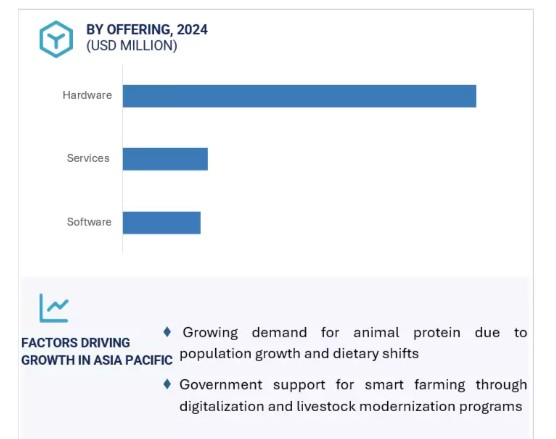 하드웨어, 소프트웨어 및 서비스를 포함하는 제공 부문은 예측 기간 동안 상당한 점유율을 차지할 것으로 전망됩니다. 동물 건강, 생산성 및 자원 효율성 분야에서 데이터 기반 솔루션에 대한 수요 증가로 인해 광범위한 채택이 이루어지고 있습니다. 이러한 혁신은 전통적인 축산 운영을 자동화되고 지능적인 시스템으로 전환시키고 있습니다.