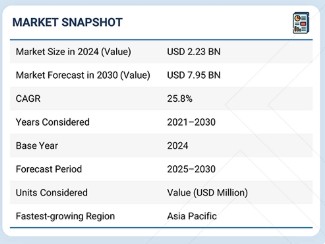 스마트 항만 시장은 예측 기간 동안 가치 기준으로 연평균 복합 성장률(CAGR) 25.8%로 성장할 것으로 전망됩니다. 탈탄소화 추진, 항만 운영을 위한 IoT·AI·블록체인 기술 의존도 증가, 글로벌 공급망 내 실시간 가시성 수요 증대가 시장 성장을 주도하고 있습니다. 정부 지원 항만 현대화 사업과 민간 부문의 디지털·친환경 인프라 투자가 기술 공급업체와 항만 운영사에 상당한 기회를 창출할 것으로 예상됩니다.