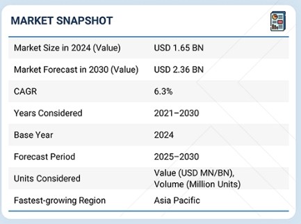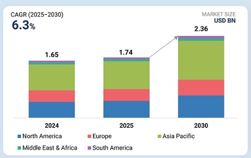 솔리드 스테이트 릴레이 산업은 2025년 17억 4천만 달러 규모로 평가되며, 2030년까지 23억 6천만 달러에 도달할 것으로 전망됩니다. 동기간 연평균 복합 성장률(CAGR)은 6.3%를 기록할 것으로 예상됩니다. 에너지 효율성과 소형 전자 설계에 대한 관심 증대가 수요를 뒷받침하고 있습니다. SSR은 소음 없이 정밀한 작동이 필수적인 의료 기기, 식품·음료 가공, HVAC 시스템에서 핵심적인 역할을 수행합니다. 산업 자동화의 확대와 디지털화, 인더스트리 4.0의 결합은 프로그래머블 로직 컨트롤러(PLC), 로봇공학, 통신 시스템에서의 사용을 가속화하고 있습니다.