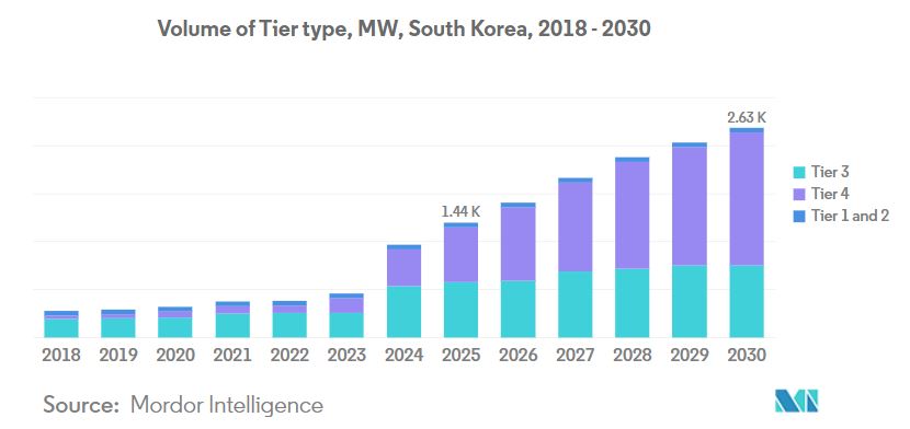 2025년, 한국 데이터 센터 시장에서 가장 빠르게 성장하는 분야는 계층 유형별로 티어 4입니다.