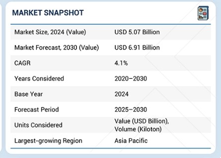 전 세계 황인 및 유도체 시장은 2025년 56억 5천만 달러에서 2030년까지 연평균 복합 성장률(CAGR) 4.1%로 성장하여 69억 1천만 달러에 달할 것으로 전망됩니다. 비료, 난연제, 특수 화학물질 및 배터리 분야의 수요가 이를 주도할 것입니다. 주요 산업용 화학물질인 황인(黃磷)은 열분해 인산 및 오산화인산으로 가공되며, 그 파생제품들은 농업, 농약, 식품, 플라스틱, 동물영양 분야를 지원합니다. 공급 형태의 유연성과 농업, 화학, 에너지 저장, 제약 등 다양한 분야에서의 광범위한 활용은 그 중요성을 부각시킵니다. 시장 성장은 증가하는 식량 수요, 인산염 비료 의존도, 첨단 소재 혁신, 확대되는 화학 및 에너지 저장 응용 분야에 힘입어 가속화되고 있습니다.